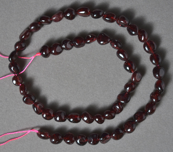 Garnet pebble beads Catalog 2428 15.33 in. 9 x 7mm average 192 carats $27 |