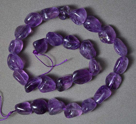 Amethyst nugget beads Catalog 2438 16 in. 18 x 9mm average 355 carats $22 |
