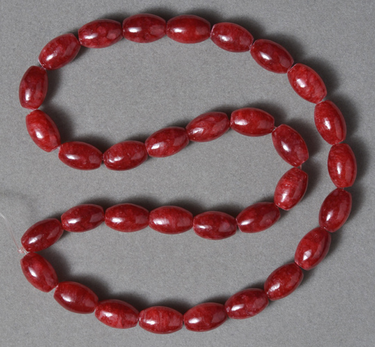 Ruby calcite barrel beads Catalog 2452 16 in. 12 x 8mm 200 carats $18 |