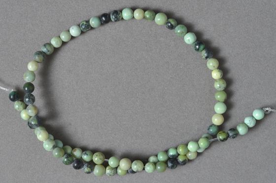 Australian jade round beads Catalog 2468 15.5 in. 5.5mm 80 carats $22(SOLD) |