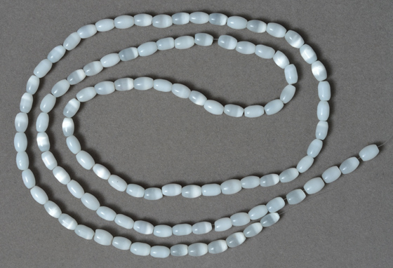Cat's eye glass rice beads Catalog 2469 30 in. 8 x 5mm 122 carats $12 |