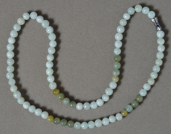 ![]() Supersize Genuine jadeite jade round bead necklace. Several green shades with mostly very light jade. |