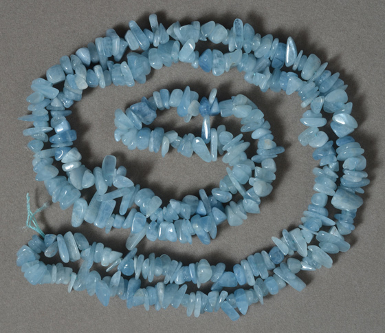 Aquamarine chip bead necklace Catalog 2496 35 in. 5 to 14mm 375 carats $26 |
