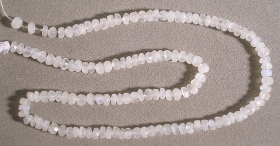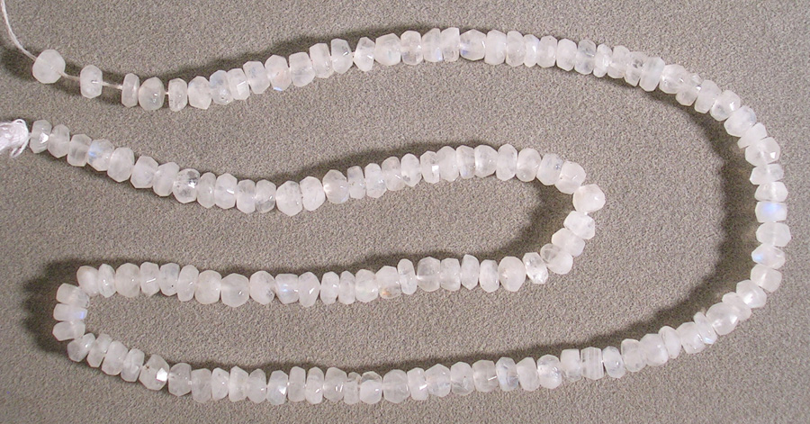 Supersize Rainbow moonstone rondelle bead strand Catalog 1510 14 in. 4.5 to 5mm 58.55 ct. $14.50(SOLD) |