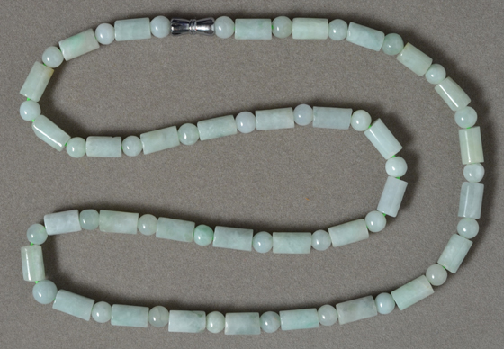 Jade round and drum beads Catalog 2501 19 in. necklace 18.5 in. of beads in. 5mm round beads 8 x 5mm drum beadsmm 142 carats $26 |