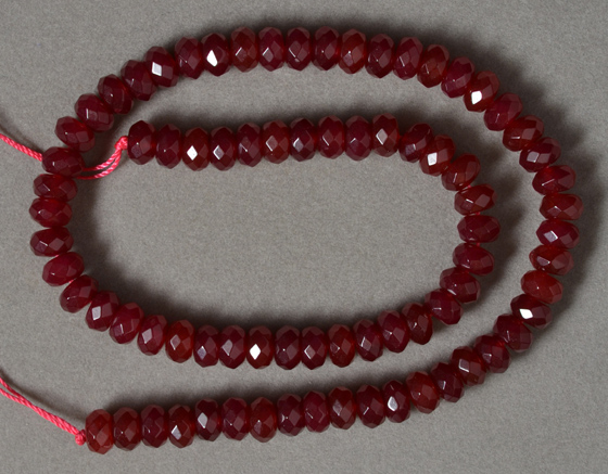 Ruby jade faceted rondelle beads Catalog 2515 15 in. 8 x 5mm 180 carats $16 |