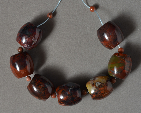 Mexican jasper barrel beads Catalog 2519 7 beads 18 x 18mm 360 carats $24 |
