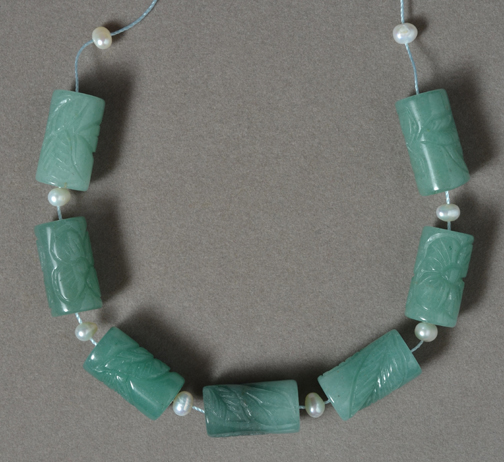 Aventurine carved drum beads Catalog 2523 7 beads 21 x 12mm 195 carats $18 |