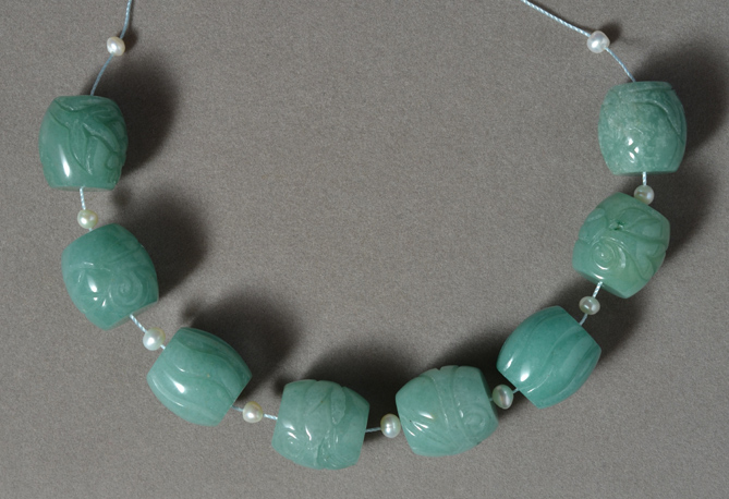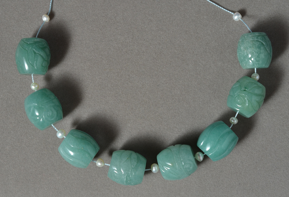 Aventurine carved barrel beads Catalog 2524 8 beads 18 x 18mm 370 carats $29 |