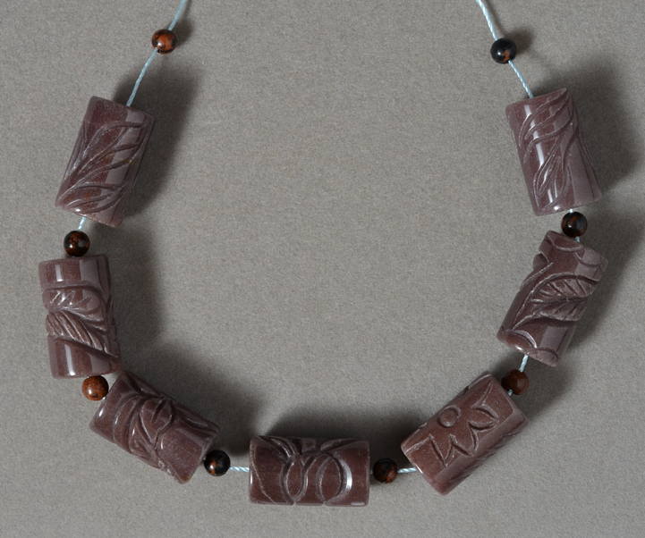 ![]() Supersize Nicely carved flora patterns decorate these drum beads from Indian sunset agate. We have four strands of these left. |