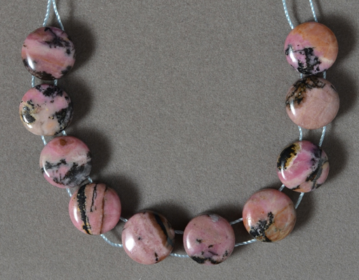 Rhodonite coin beads Catalog 2536 10 beads 12 x 6mm 95 carats $15 |