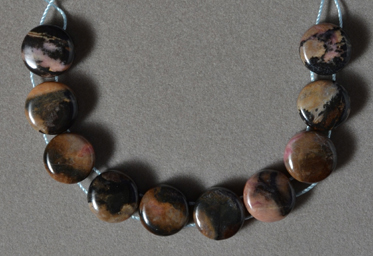 Rhodonite coin beads Catalog 2537 10 beads 12 x 6mm 95 carats $15 |