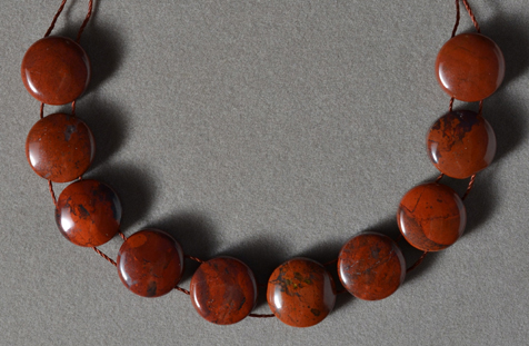 ![]() Supersize Ten lighter colored coin beads from California Red Stone Canyon jasper. Cabochon cut with one rounded side and double drilled. |