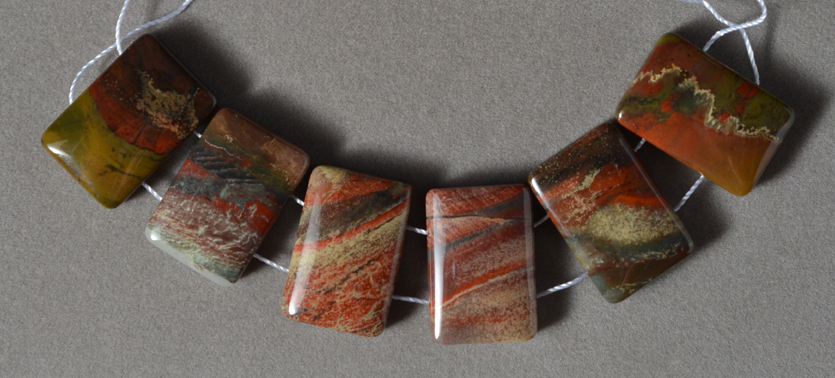 Red snake skin jasper rectangle beads Catalog 2548 6 beads 25 x 17 x 7mm 175 carats $18 |