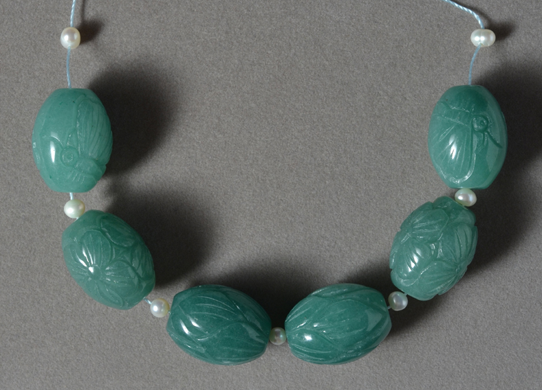 Aventurine carved barrel beads Catalog 2552 6 beads 23 x 18mm 305 carats $25 |