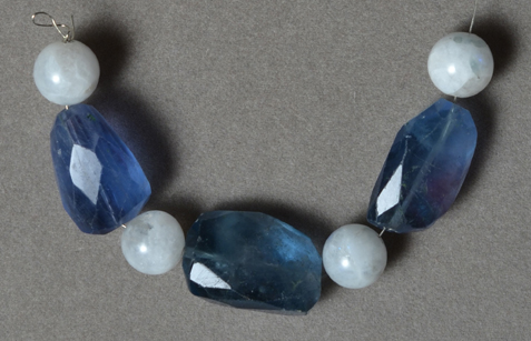 Fluorite faceted nugget beads with moonstone round beads Catalog 2569 3.5 in. 20 x 13 x 9mm to 18 x 9mm fluorite 9mm moonstone 85 carats $23 |