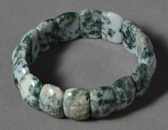 Opaque moss agate bracelet Catalog 2590 8 in. 19 x 13 x 7mm 230 carats $23 |