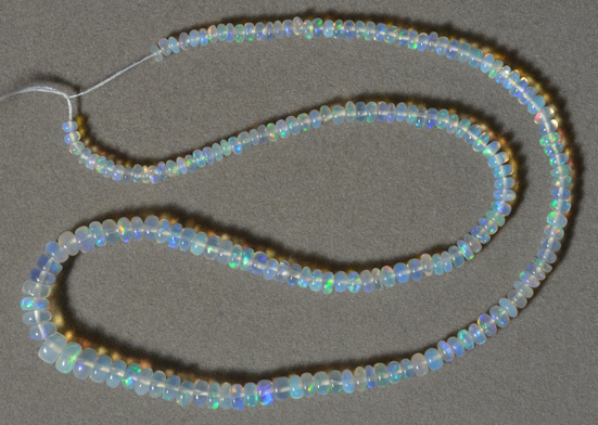 Welo opal rondelle beads Catalog 2606 16.5 in. 3 to 6mm 37 carats $63 |