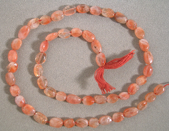Supersize Sunstone oval bead strand Catalog 1521 14 in. 6 to 9mm long 53.15 ct. $15(SOLD) |