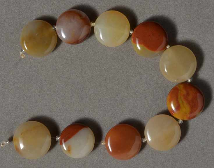 ![]() Supersize Several larger yellow, red and white agate disc beads. |