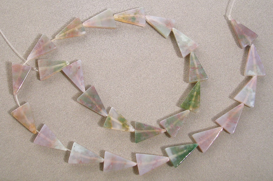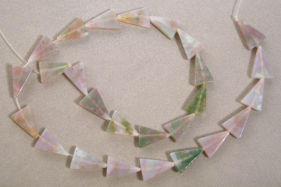 Supersize Moss agate triangle bead strand Catalog 1523 15 in. 16 x 10mm 111ct. $15(SOLD) |