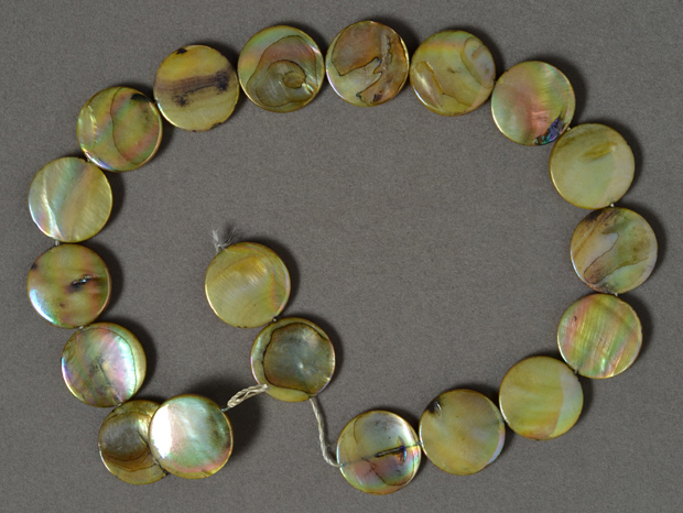 Mother of pearl coin beads Catalog 2648 15 in. 21 x 4mm 220 carats $24 |