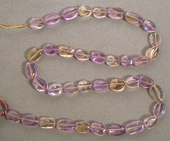 Supersize Ametrine oval bead strand Catalog 1529 15 in. 9 to 12.4mm 81.38 ct. $17(SOLD) |