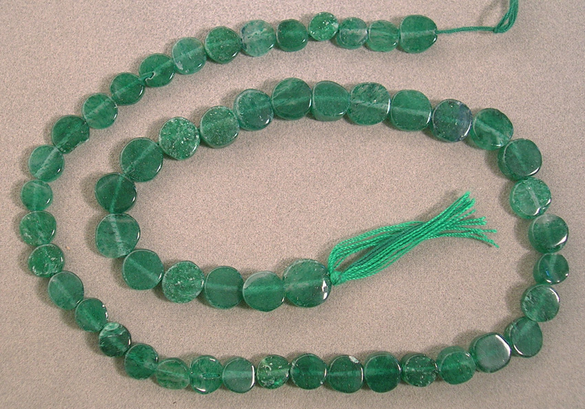 Supersize Green aventurine coin bead strand Catalog 1532 14.5 in. 6 to 9.5mm 79.30 ct. $8.50 |