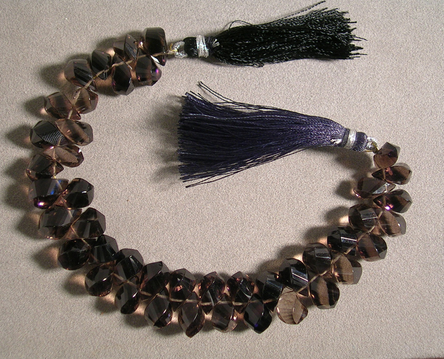 Supersize Smoky quartz spiral cut briolettes Catalog 1545 8 in. 13.1 x 6.6mm to 7.5 x 6.8mm 147.8 ct. $75 |