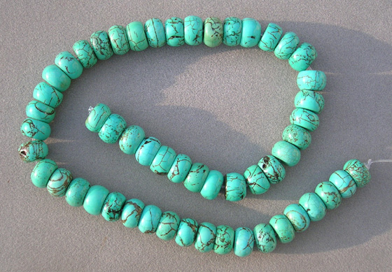 Large Tibetan turquoise rondelle beads Catalog 1562 15.5 in. 12 x 8mm 460 ct. $26(SOLD) |