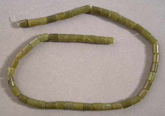 Olive jade cylinder bead strand Catalog 1571 16 in. 8 x 6mm 140 ct. $9(SOLD) |