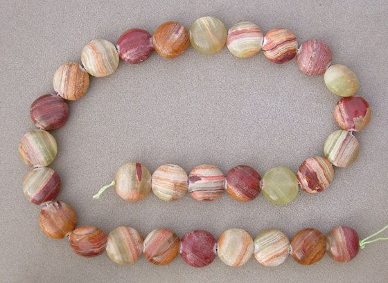 Brown malachite button bead strand Catalog 1576 16 in. 14mm 284 ct. $12(SOLD) |