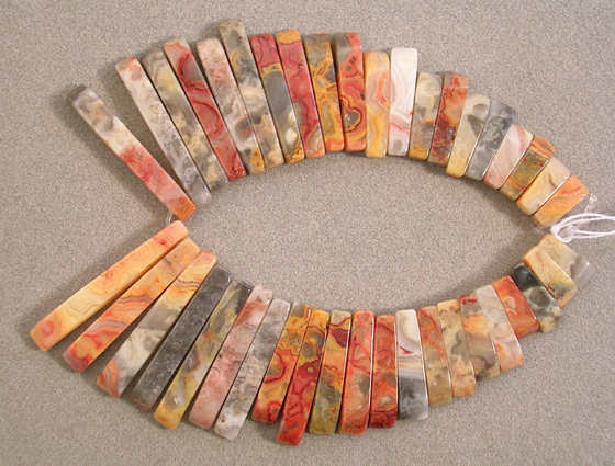 Crazy lace agate fan bead strand Catalog 1592 6 in. fan 11 to 31mm long 112.5 ct. $18(SOLD) |