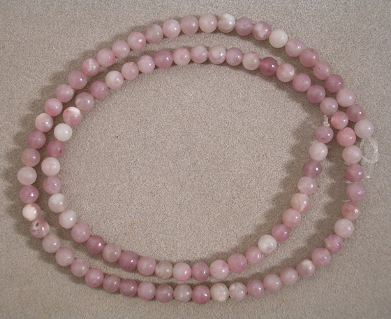 Lepidolite round bead strand Catalog 1594 15.5 in. 4mm 53 ct. $22(SOLD) |