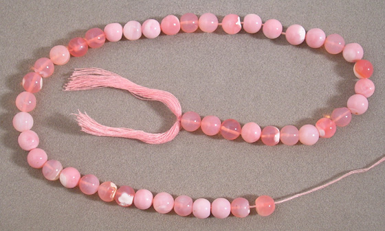 Pink Peruvian opal round beads Catalog 1599 14 in. 9mm 110 ct. $30(SOLD) |