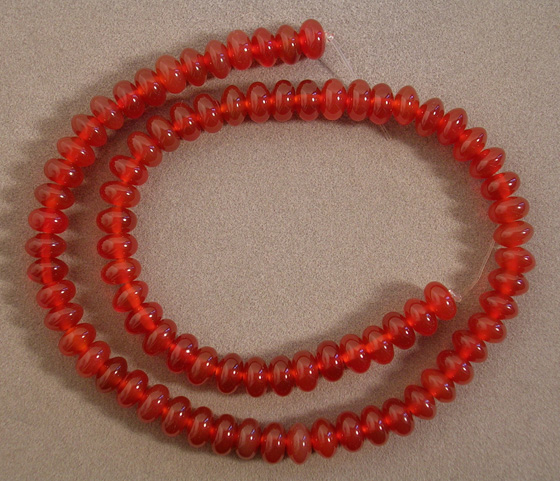 Australian fire opal rondelles Catalog 1610 15.5 in. 8 x 5mm 185 ct. $22(SOLD) |