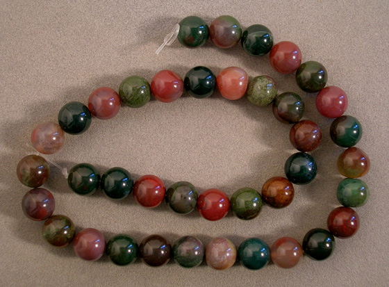 Australian bloodstone mixed color round beads Catalog 1612 15 in. 10mm 293 ct. $20(SOLD) |