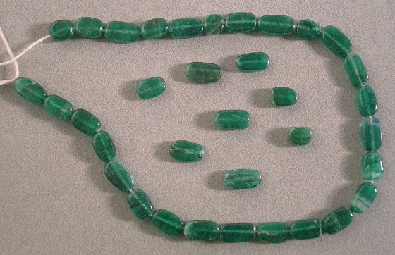 Tsavorite garnet flat oval beads Catalog 1625 13 in. 12 to 10 x 7 to 8mm 85 carats $18.00(SOLD) |