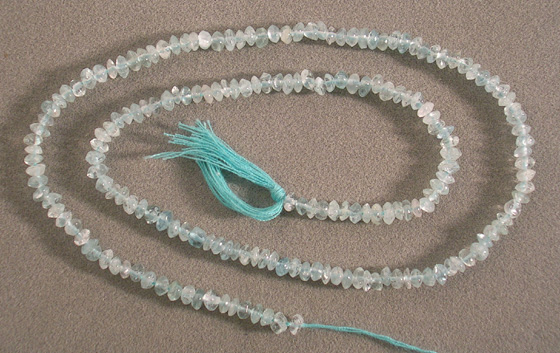 Supersize These small aquamarine rondelle beads are clear and gemmy.
