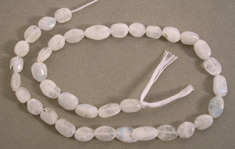 Australian rainbow moonstone oval beads Catalog 1638 14.5 in. 11x7 mm 106 carats $13.50(SOLD) |