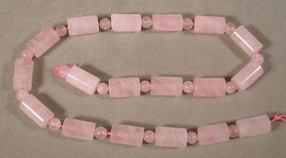 | Supersize Rose quartz round and barrel beads Catalog 1435 16 in. 8 x 15mm barrels 305 ct. $5.50(SOLD) |