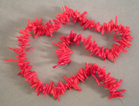 Supersize 16" strand of red coral frangia. Frangia are the edges of the coral.