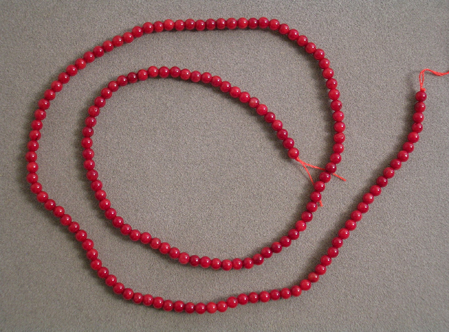 Supersize Tiny round red coral beads. These are darker red than the previous strand.