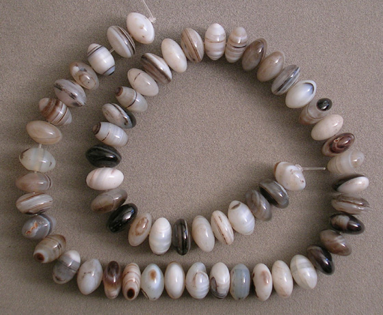 Supersize A handsome strand of banded agate with black, white and grey.