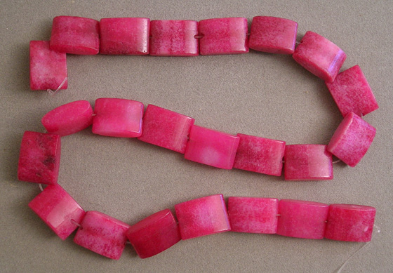 Supersize These ruby beads are tapered on their sides. They are a mixture of quartz and genuine ruby.