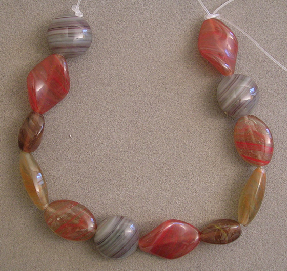 Supersize Grey and wine colored striped sea glass beads in assorted shapes.
