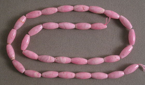 Supersize These Brazilian rhodochrosite long barrel beads could also be called drum ovals.