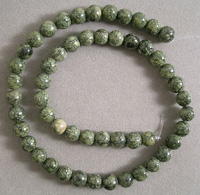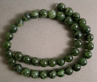 Green serpentine round beads Catalog 1886 16 in. 8mm 175 carats $14(SOLD) |