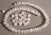Dyed moonstone heshi beads Catalog 1682 14.5 in. 5 to 8mm 97 carats $20(SOLD) |