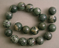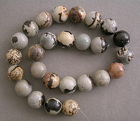Leopard skin jasper round beads Catalog 1657 16 in. 16mm 665 carats $30(SOLD) |